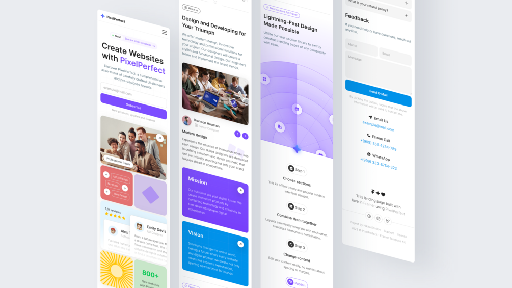 Give your website an exceptional look with our PixelPerfect template. Our minimalistic design and smooth step-by-step animations make navigating your site surprisingly enjoyable. With clean design and thoughtful animations, your content will stand out, catching the eyes of visitors.