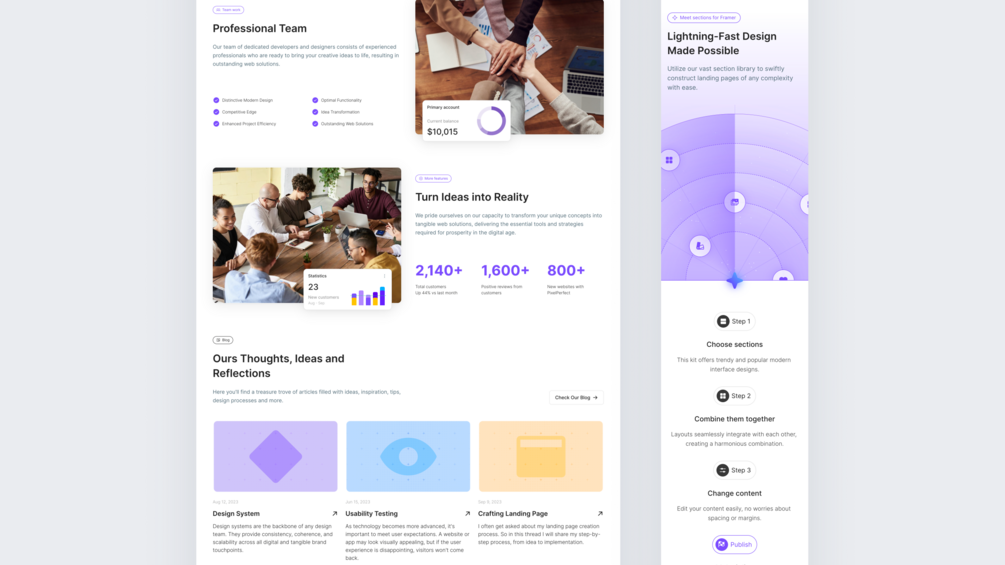 Give your website an exceptional look with our PixelPerfect template. Our minimalistic design and smooth step-by-step animations make navigating your site surprisingly enjoyable. With clean design and thoughtful animations, your content will stand out, catching the eyes of visitors.